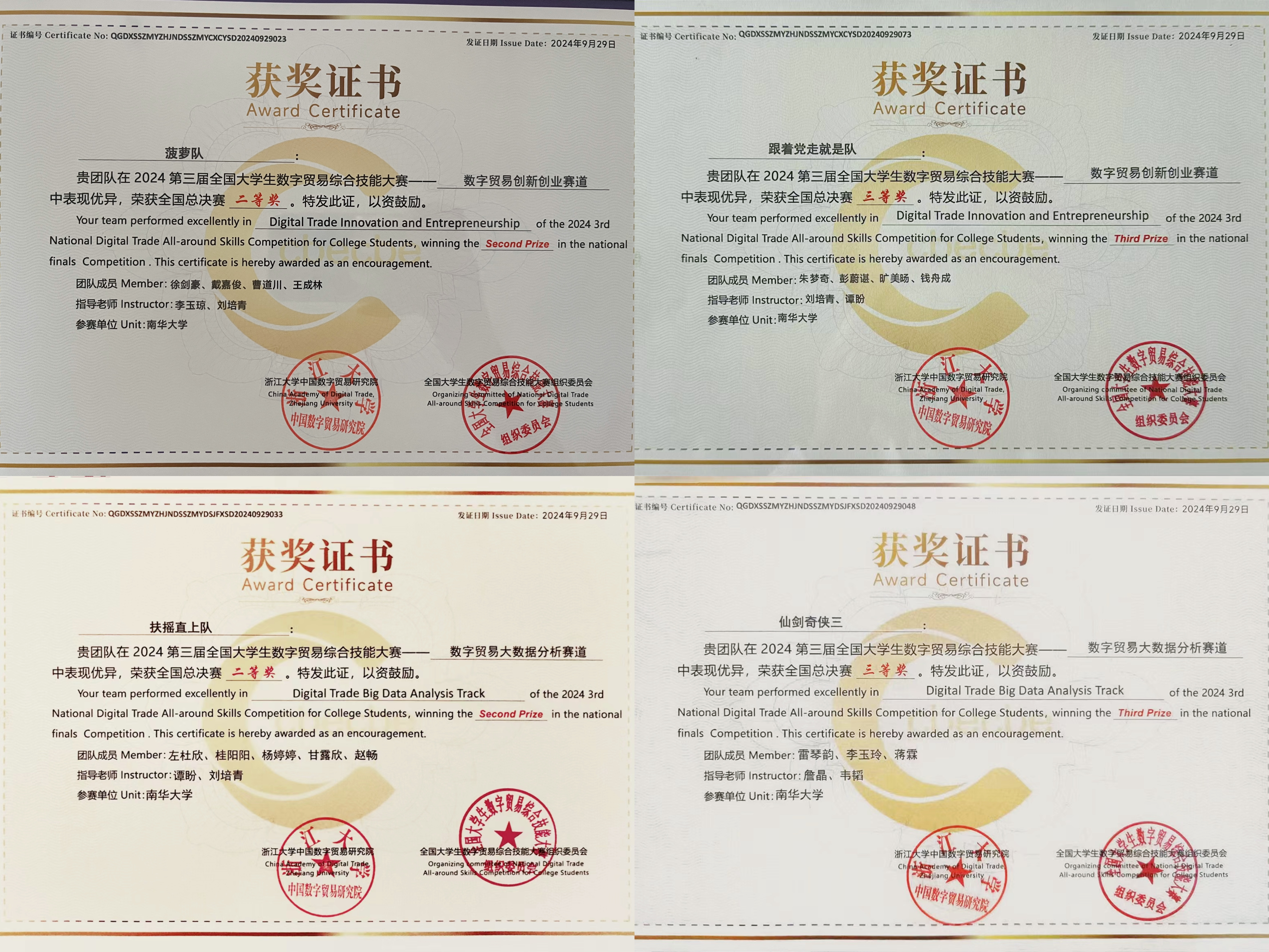 9月29日,第三届全国大学生数字贸易综合技能大赛全国总决赛在杭州落下帷幕。MK平台代表队荣获佳绩,其中“菠萝队”“扶摇直上队”分别获得创新创业赛道的和大数据分析赛道全国赛二等奖,“跟着党走就是队”“仙剑奇侠三队”分别获得创新创业赛道的和大数据分析赛道全国赛三等奖,MK平台同时获得优秀组织奖。