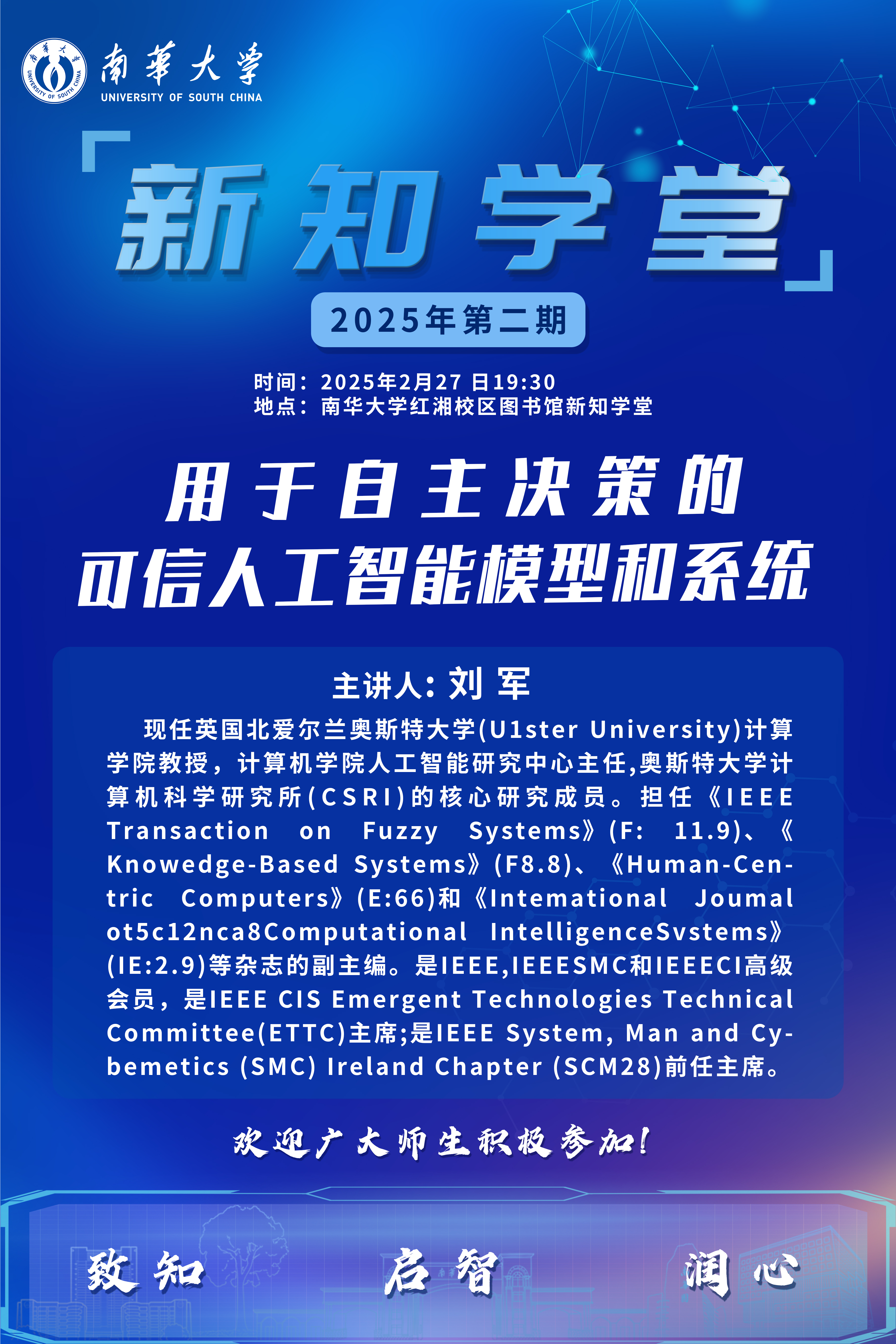 新知学堂2025年第二期:用于自主决策的可信人工智能模型和系统